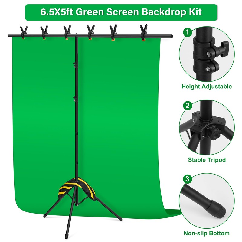 • Sturdy background stand: The green screen stand is made of high quality metal, durable. The bottom is equipped with a non-slip design to increase the stability of the backdrop.