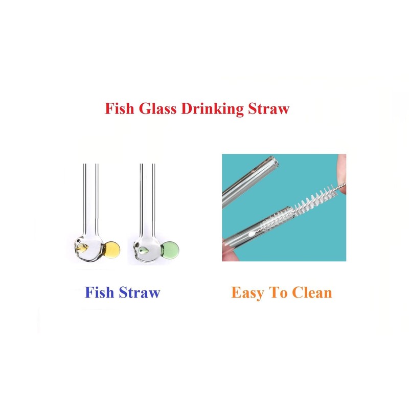 3.Each set includes 1 Pink-fish glass straw,1 Blue-fish glass staw,1 normall glass staw and 1 cleaning brushe for easy maintenance. These straws are not only stylish but also practical, as they are dishwasher safe and easy to clean. Upgrade your drinking routine with these creative and environmentally-friendly glass straws.