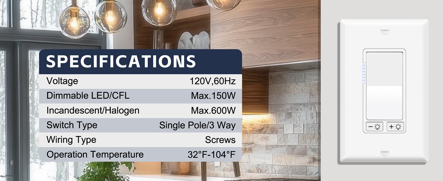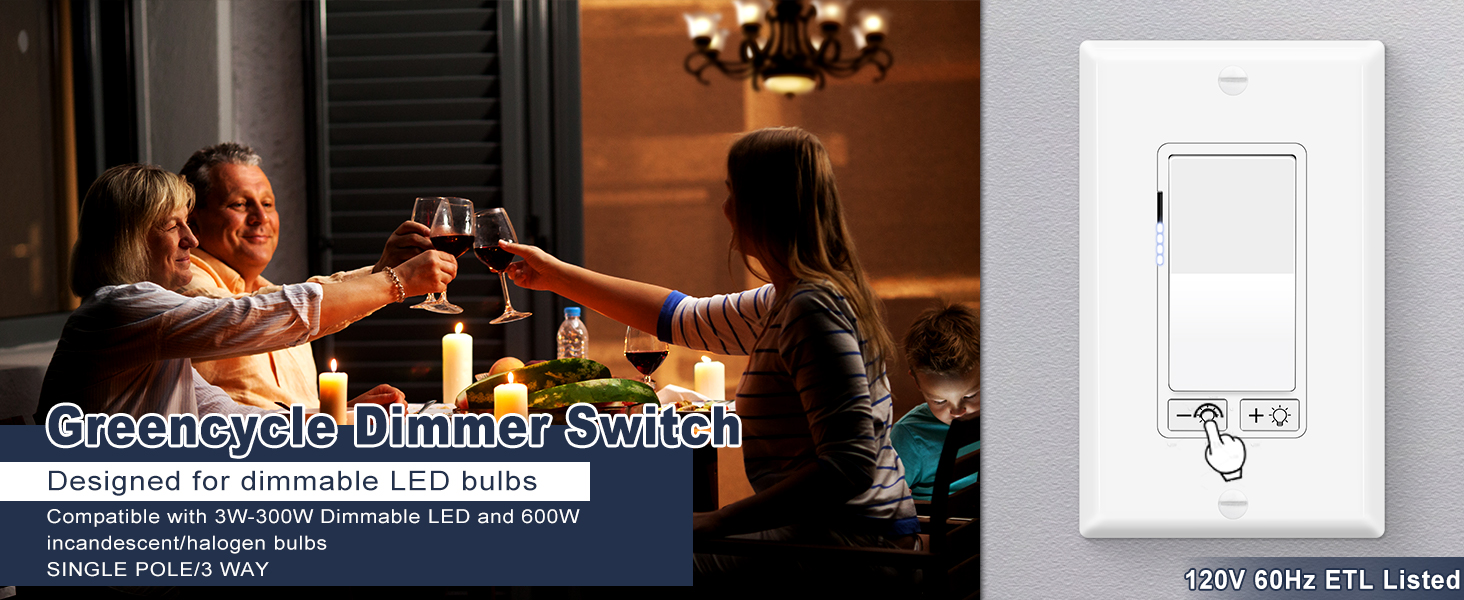 GREENCYCLE 20P 3-Way Dimmer 150W Dimmable LED/CFL 600W Incandescent Easy Install No Neutral