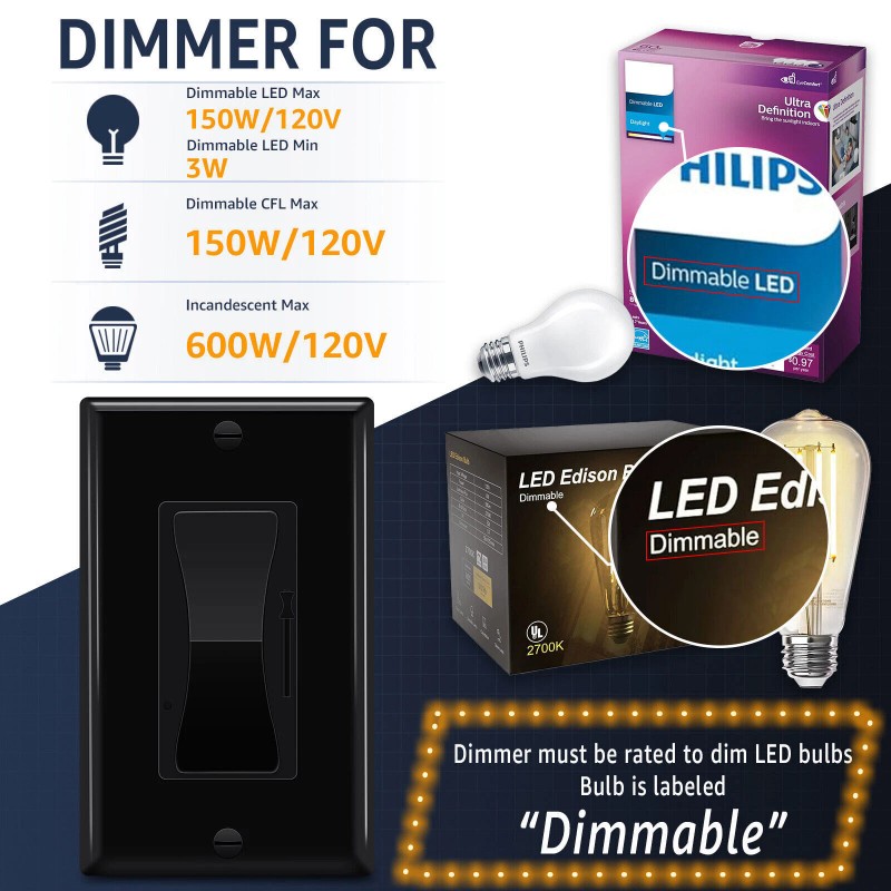 GREENCYCLE 8PK Black Dimmer Light Switch LED CFL 3-Way LED Incandescent ETL