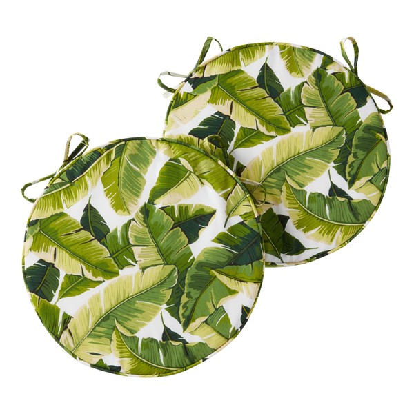 Greendale Home Fashions Outdoor 18-inch Round Reversible Seat Cushion, Tropical White 2 Count