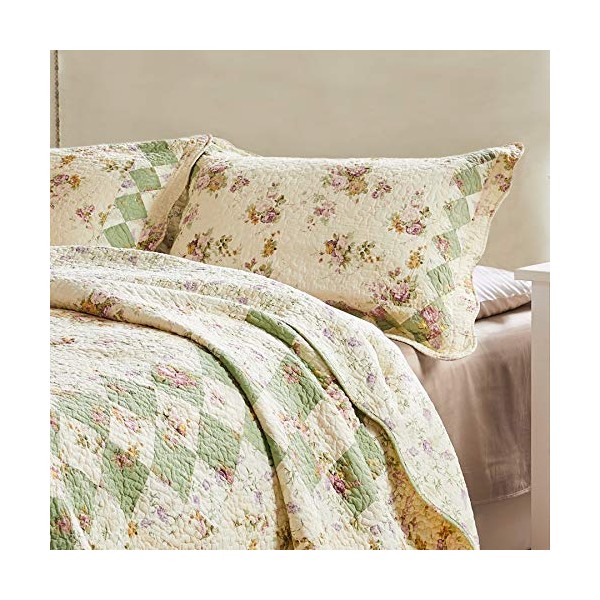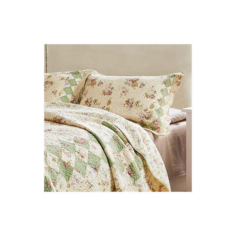 - Bliss brings Out the charm of romantic vintage Style featuring Floral print fabrics, Framed with Sage and ivory diamond patchwork, bordered with a scalloped edge