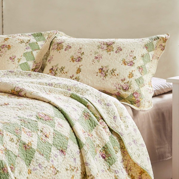 - Bliss brings Out the charm of romantic vintage Style featuring Floral print fabrics, Framed with Sage and ivory diamond patchwork, bordered with a scalloped edge