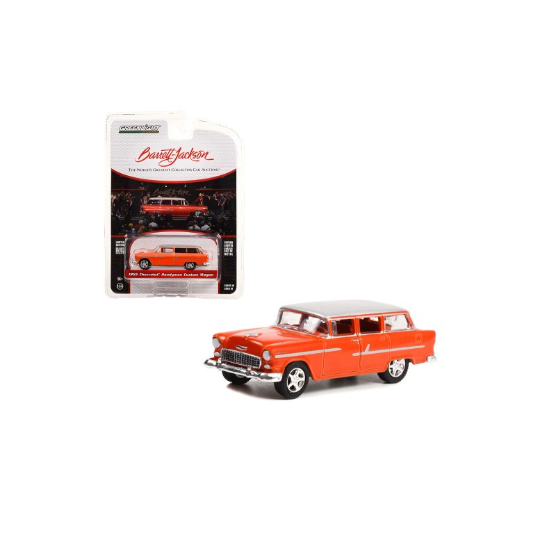 Diecast collectors will adore this neat station wagon from Greenlight! This 1955 Chevrolet Handyman Custom Wagon is a 1/64 scale model replica. It comes in orange and features real rubber tires, detailed exterior, metal body and chassis, comes in a blister pack. It's an excellent piece for any station wagon collection, and ideal for hardcore Chevrolet buffs!