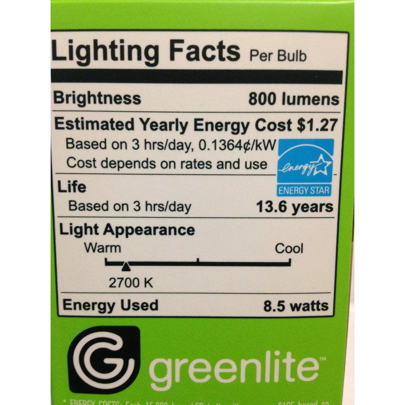Greenlite 8.5W LED 60W Equivalent, Dimmable, 2700K, 4 Pack, 15,000 Hours 800 Lum