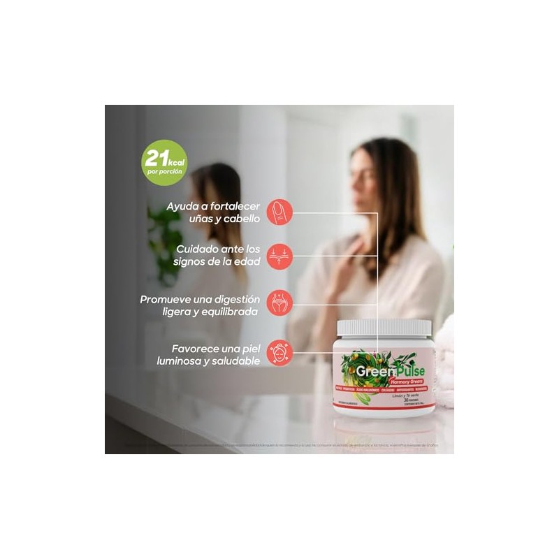 GreenPulse Performance Harmony Greens | Jugo Verde en Polvo sin azícar, con Colágeno, Ácido Hialurónico y Biotina | Antioxidantes | Probióticos | Sabor Limón y Té Verde | 30 Porciones