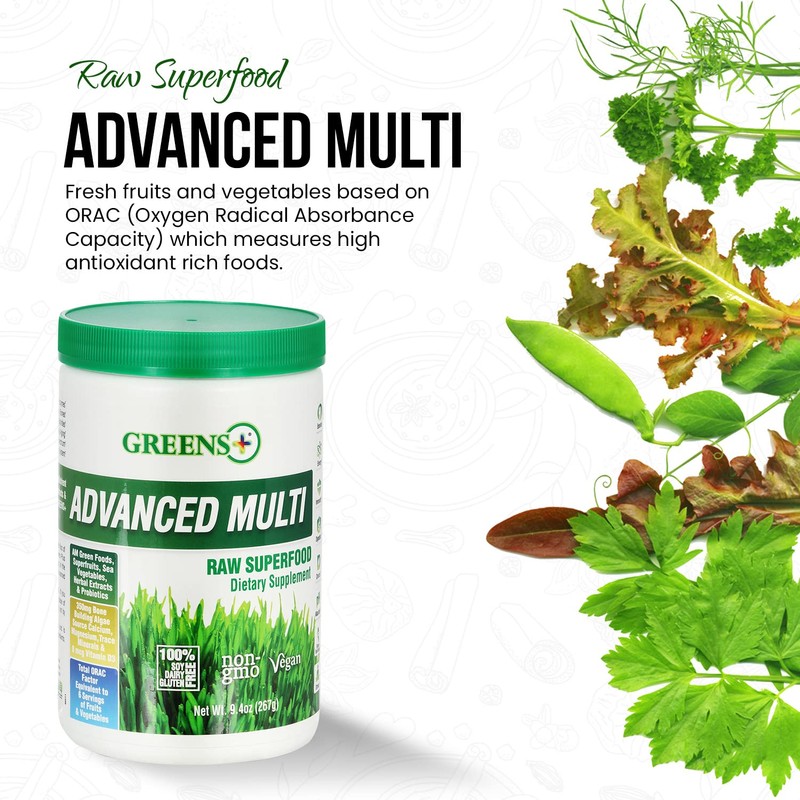 Greens+ Greens+ Advanced Multi Raw Superfood | Essential Blend of Raw Foods, Superfruits and Sea Vegetables Powder | Vegan | Dietary Supplement | Non GMO, Soy Dairy & Gluten-Free | Size 9.4oz