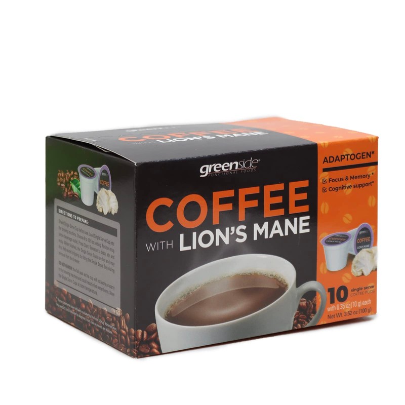 greenside - Coffee with Lion's Mane - Single Serve Cups - Focus & Memory Enhancer - 10 Cups (10-Gram Serving/Cup)