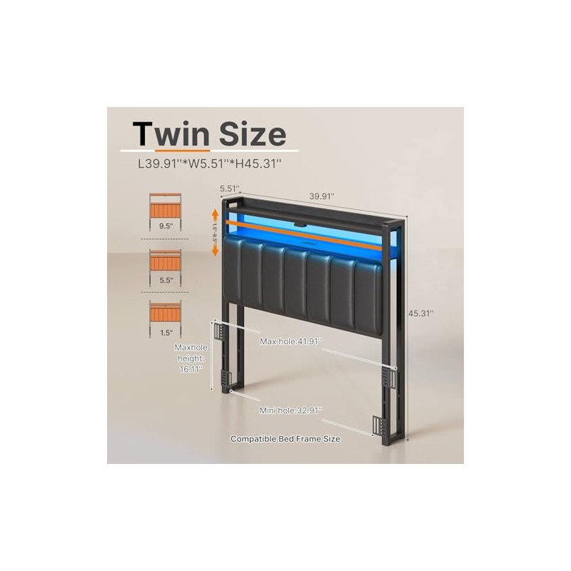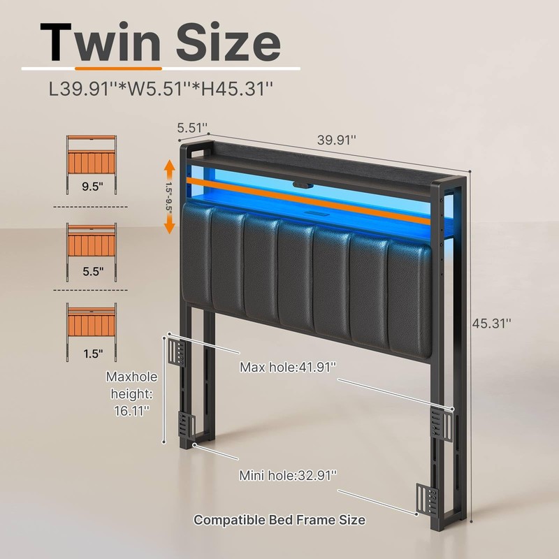 - Headboard for Bed with Storage, Upholstered Headboards with Charging Station, Head Board Only, Height Adjustable, Reversible, Sturdy and Stable Headboard