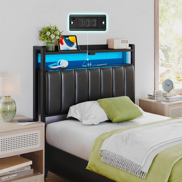 GREENSTELL Headboard for Bed with Storage, Upholstered Headboards with Charging Station, Head Board Only, Height Adjustable, Reversible, Sturdy and Stable Headboard