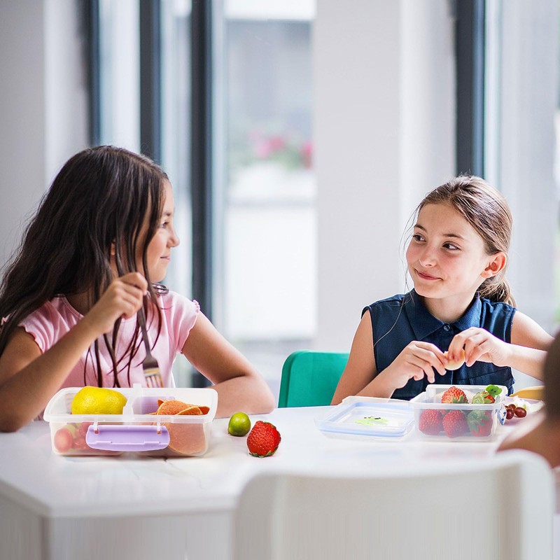 - 【EASY-OPEN LIDS】A sealed lunch box with a lid and two compartments that a child can independently open or close is stackable in your lunch pack and has a leakproof design.