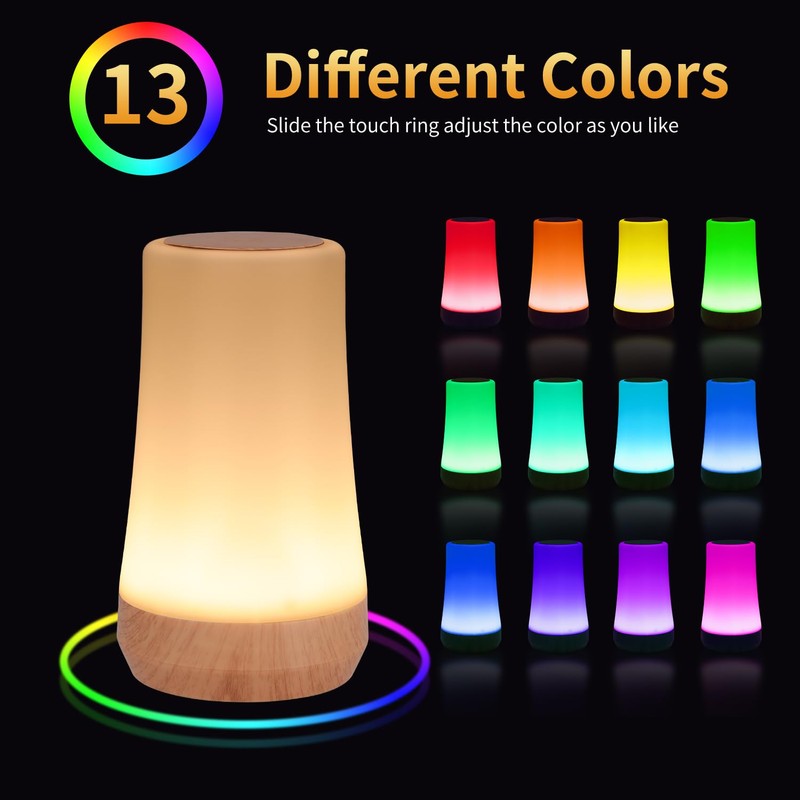 GREENTREEN LED Nachttischlampe Touch Dimmbar USB Aufladbar für Kinder, Schlafzimmer, Wohnzimmer, Camping, 13 Farben RGB Farbwechsel Nachtlicht Tischlampe mit Fernbedienun und Timing Funktion