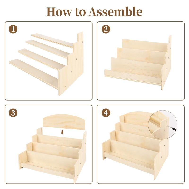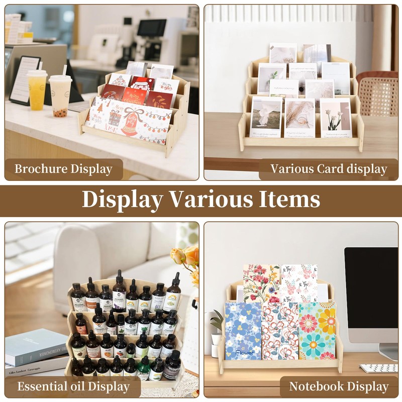 - 【4-Tier Layered Design: Storage & Display in One】The well-planned 4 independent display layers can easily hold thin items like greeting cards, postcards, and brochures, as well as small items such as essential oil bottles, sticker rolls, and photo cards—effectively preventing clutter from stacked items. The layered design ensures clear product categorization, allowing customers to find target items at a glance. Meanwhile, it maximizes vertical space utilization and saves desktop area.