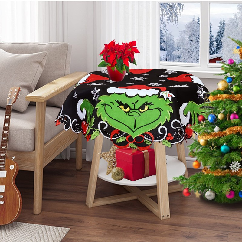 Grelucgo Embroidered Black Snowflakes Round Tablecloth for Christmas Holidays and Winter (Round 34 inch)