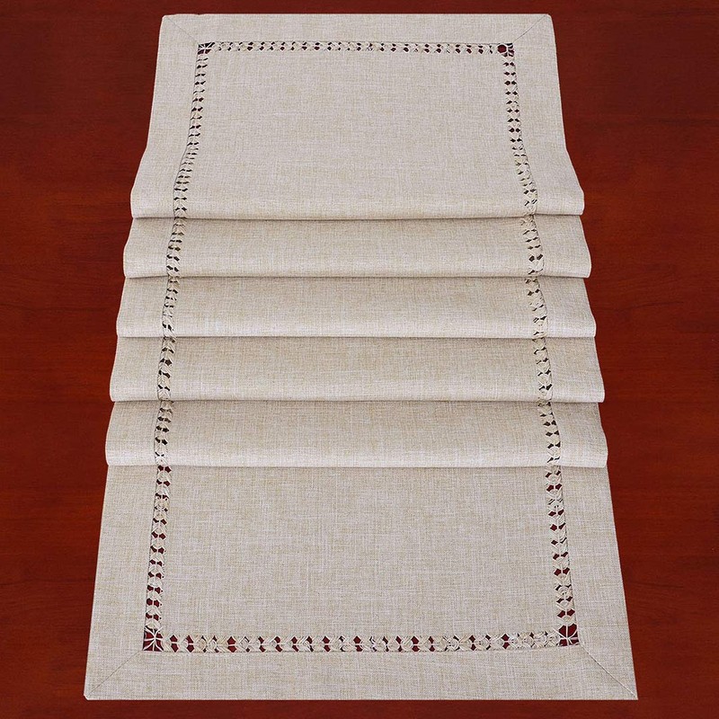 Grelucgo Handmade Hemstitched Polyester Rectangle Table Runners,Beige 14x72 inch