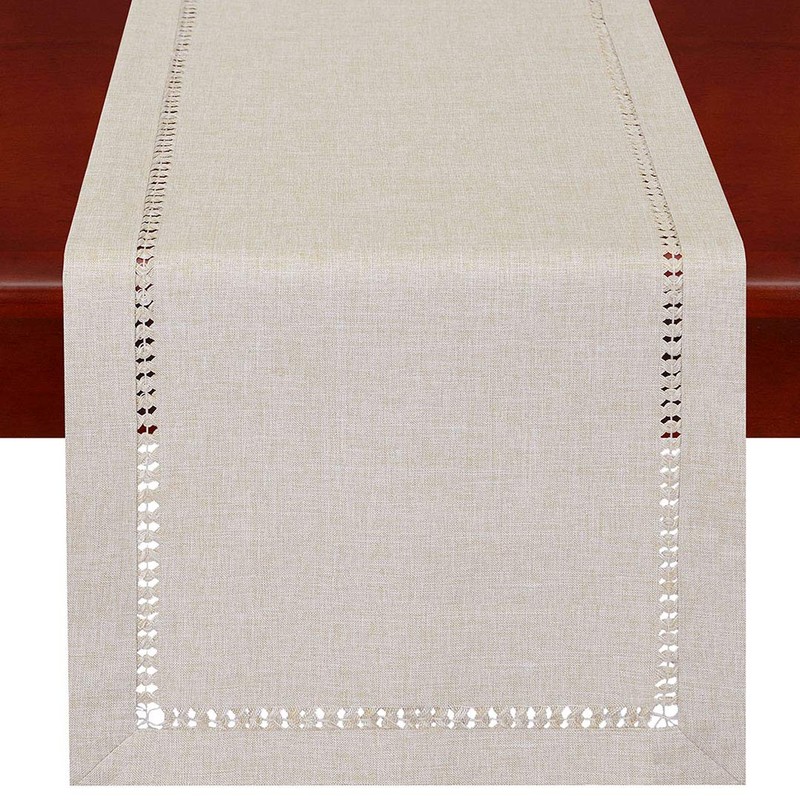 Grelucgo Handmade Hemstitched Polyester Rectangle Table Runners,Beige 14x90 inch