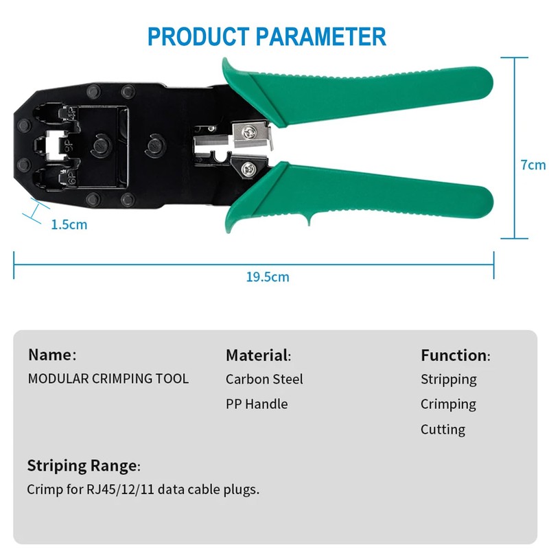 - Einfach zu verwenden: Das RJ45-Crimpwerkzeug bietet eine zuverlässige, benutzerfreundliche und kostengünstige Lösung für sofortige Schneidanforderungen. Es verfügt über einen rutschfesten Griff, eine Rasierklinge zum Drahtschneiden und eine Schneidkopfbaugruppe.