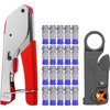 - 【KOMPLETTSET】 Das 3-in-1-Koaxialkompressionswerkzeugset enthält ein Crimpwerkzeug für Koaxialkabel, einen einstellbaren Kabelabisolierer und 20 F-Typ-RG6-Koaxialstecker. Dieses Koaxialkabel-Reparaturset bietet eine umfassende Lösung für Kabelreparaturen und -installationen.
