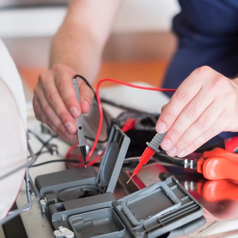 • One end of these test leads is a standard insulated 4mm banana plug with a cover for most digital multimeters. The other end is made of sharp 1mm precision probes that can easily pierce wires and meet your more detailed measurement requirements. The test cable is ergonomically designed with rounded protrusions, non-slip during testing.