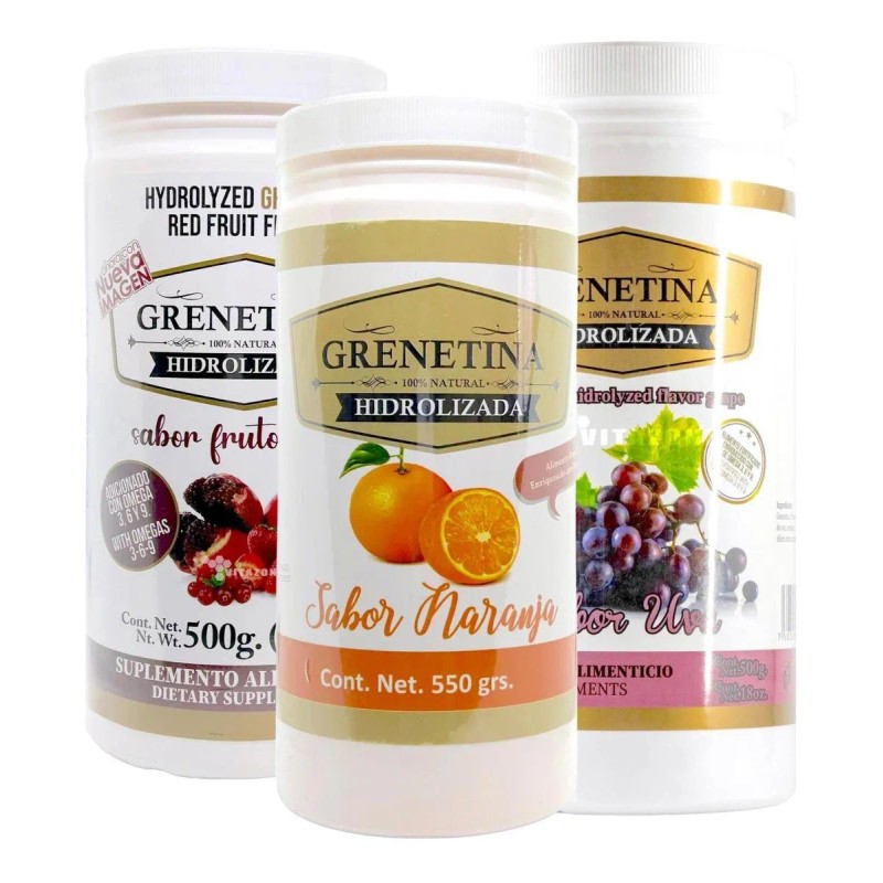 Grenetina Hidrolizada 100% Natural 500 Grs Pretty Bee 3 Bote Sabor Uva Frutos Naranja