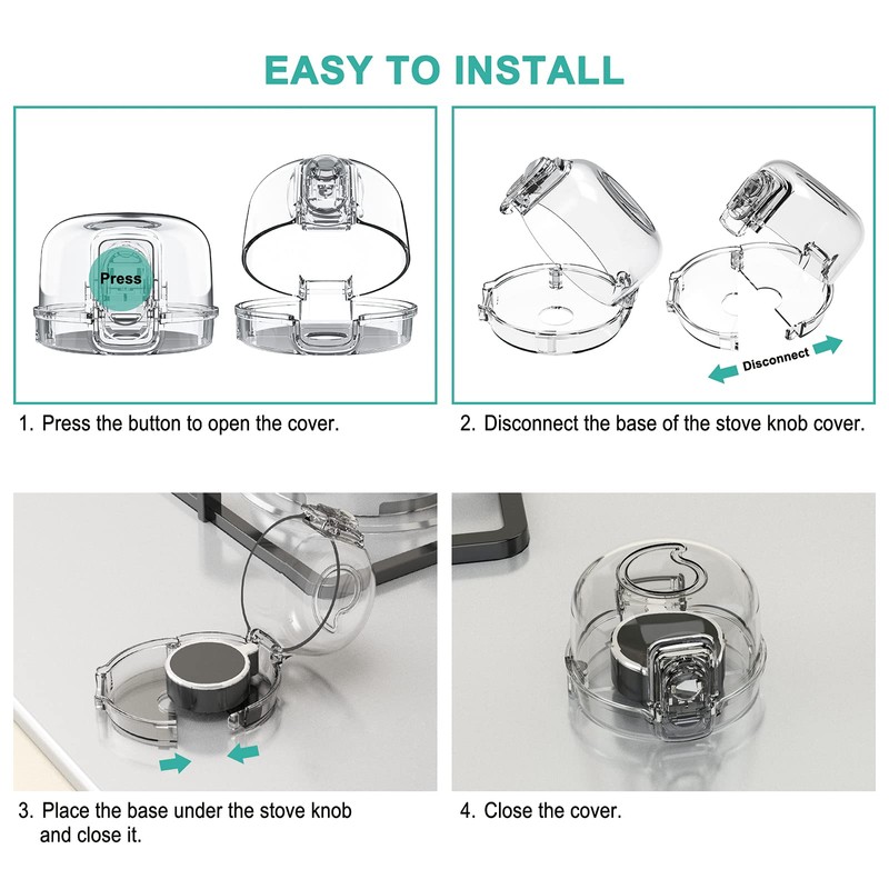 - 3. [High Temperature Resistant & Clear View] Made of hard PC material, high temperature resistant, can ensure the quality and longevity of the gas stove knob covers. And the ultra-clear stove safety knob covers will not block the view of the temperature control mark when closed.