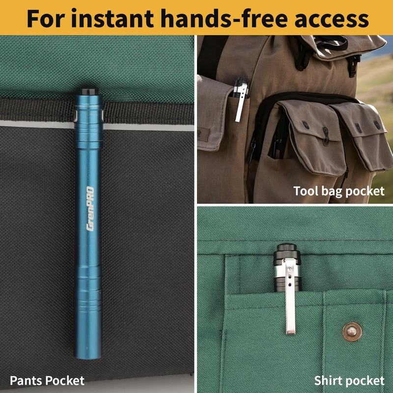 • Safety Tools in Daily - The raised rubber switch prevents accidental activation in pockets or bags. The quality metal clip grips jeans pockets, shirt collars, tool pouches, or dog leashes – stow it securely yet access it instantly. Perfect for hands-free use during dog walks, mechanic work, or bedside emergencies.
