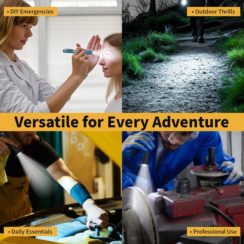 • Ultra-Portable Design - Weighing just 32g (lighter than most!), this pocket-sized flashlight slips effortlessly into dog-walking jackets, nightstand drawers, or toolkits. The pen-style shape eliminates bulkiness – clip it to your pocket or toss it on your nightstand for instant access during blackouts. Your reliable light companion for emergencies, hikes, late-night repairs, and everything in between