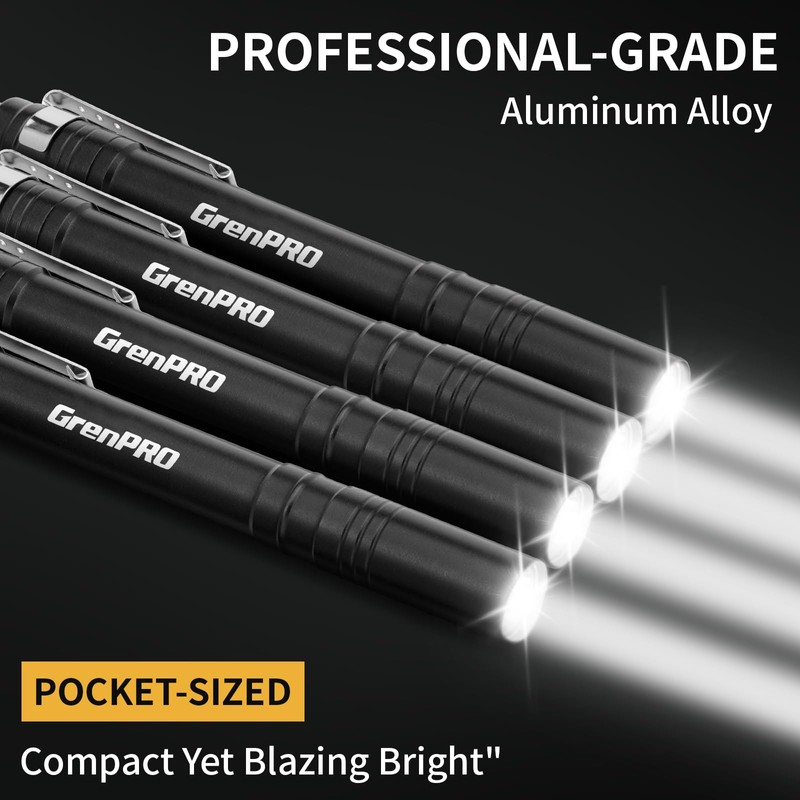 GRENPRO Pen Lights for Nurses LED Penlight, Aluminum Pocket Flashlight, Small Pocket Flashlight 2AAA Batteries Include, 4 Pack Emergency Handheld Penlight Black