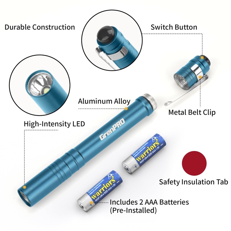 GRENPRO Pen Lights for Nurses LED Penlight, Aluminum Pocket Flashlight, Small...