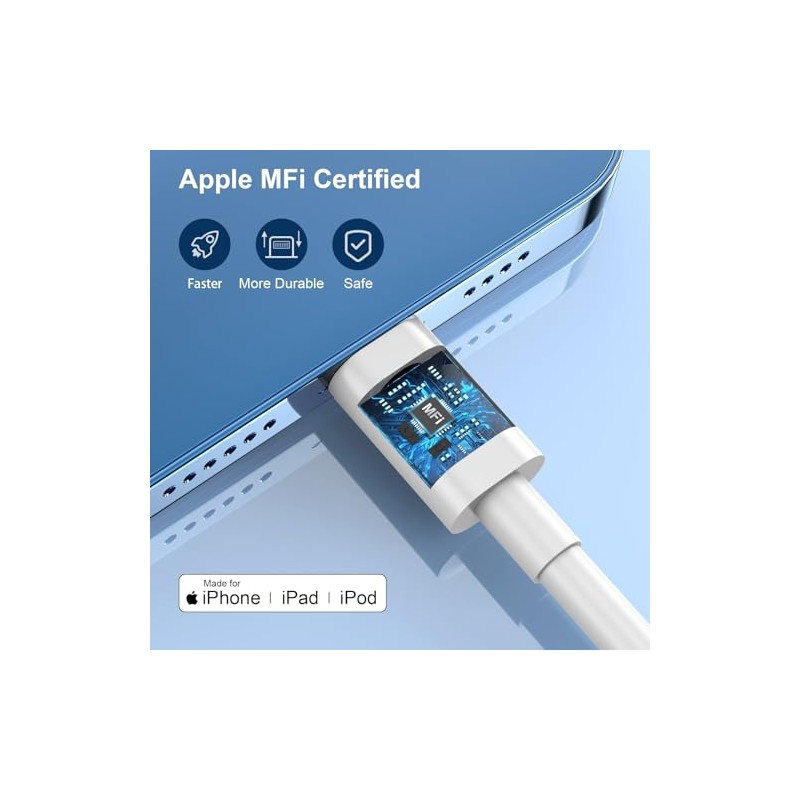 - MFi Certified for iPhone Charger Fast Charging: The Lightning cables are MFi certified, ensuring 100% compatibility with any Lightning device, including fast charging for your iPhone. They support the current iOS version and all future updates, so you can be sure you're getting the best possible charging experience.