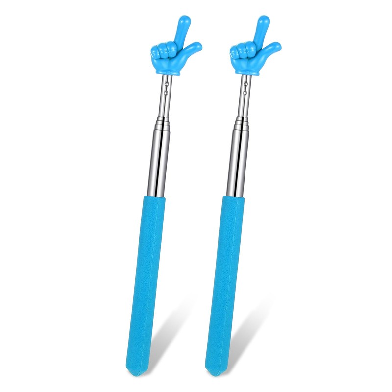Grevosea Telescopic Teachers Pointer - 2 Pcs Extendable Hand Pointer Stick, Mini Classroom Finger Pointers Stick for Elementary School Kindergarten and Teacher Supplies Interactive Learning(Blue)
