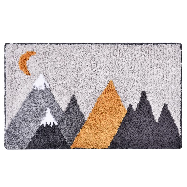 Grey Mountains Bath Rug, Soft Water Absorbent Non Slip Mat, Machine Washable Floor Mats for Shower