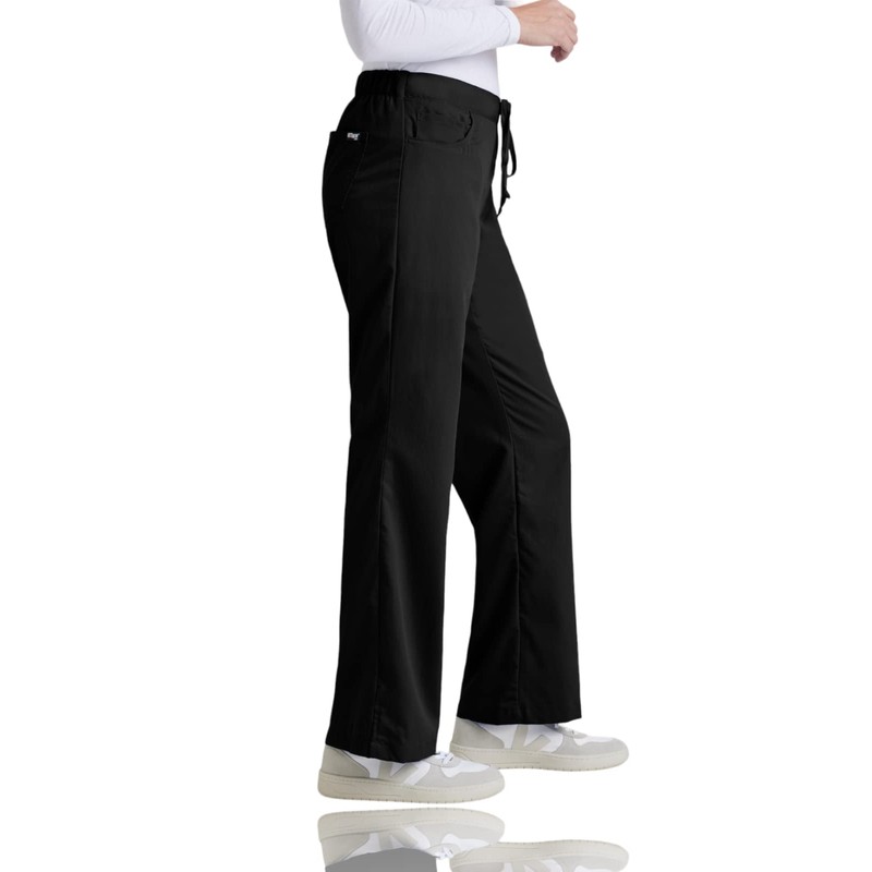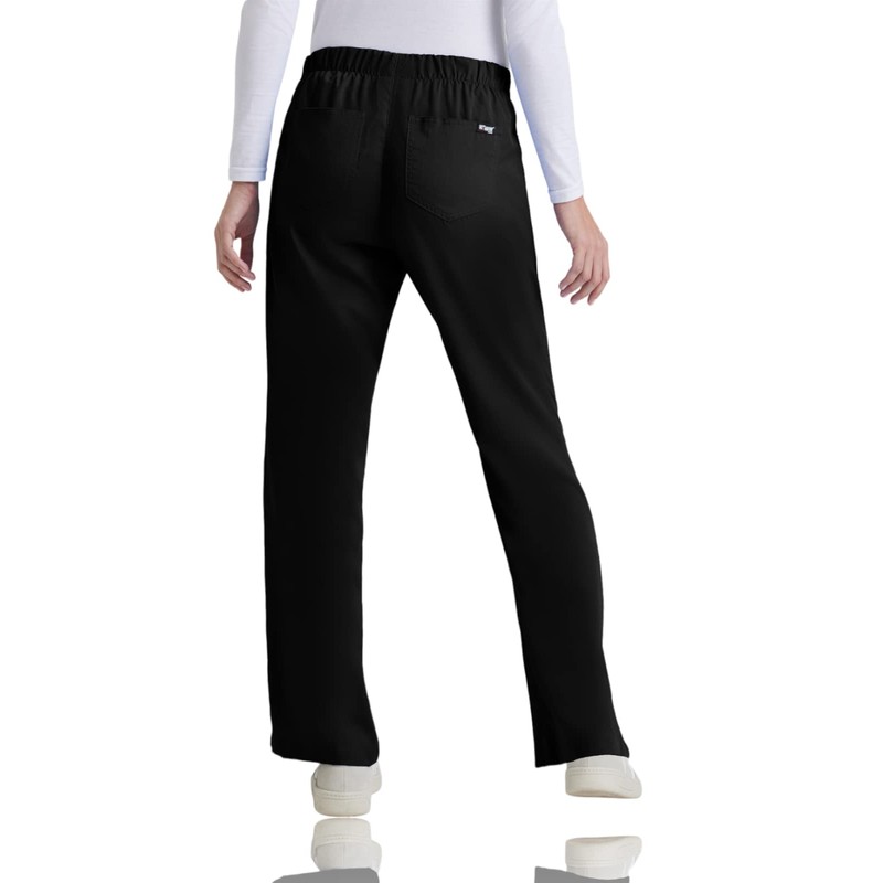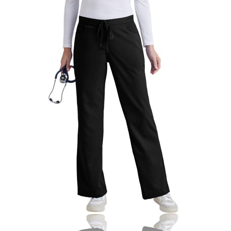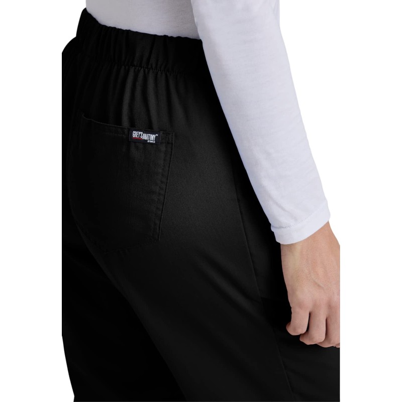 Grey's Anatomy Women's Junior Fit Elastic Back 5 Pocket Drawstring Scrub Pant, Black, Small