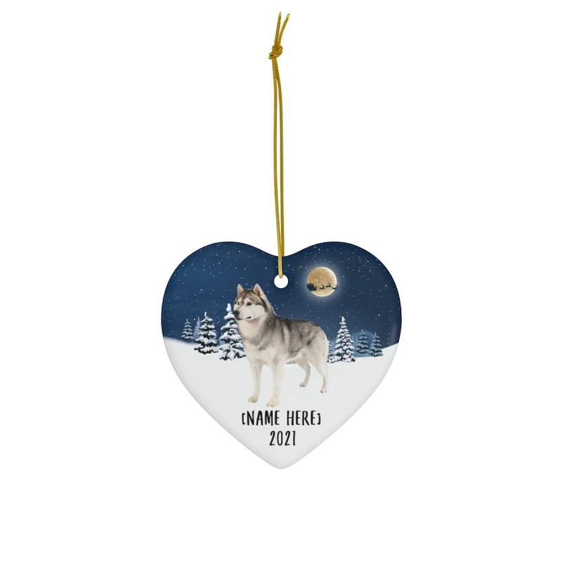 Grey Siberian Husky Dog Ornaments for 2024 Christmas Tree Personalized Name Gifts 2025 New Year Eve Decorations White Heart