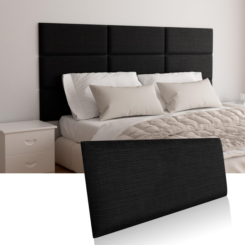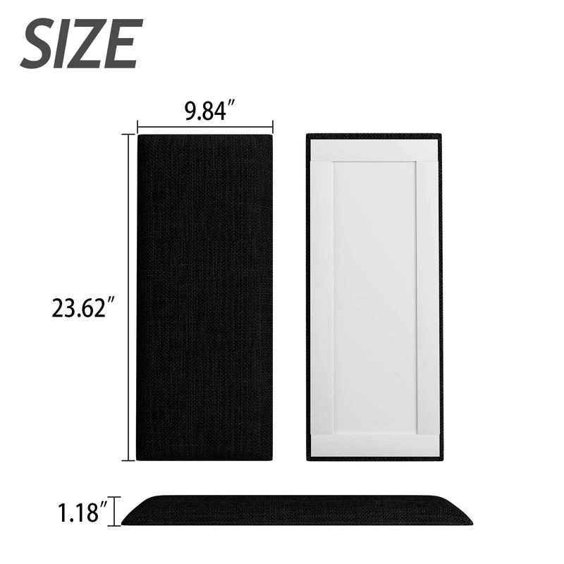 Greymond Upholstered Wall Mounted Headboard, Acoustic Wall Panel, Peel and Stick Wall Padding Panel, Black Dorm Towel Fabric, 9-Pack