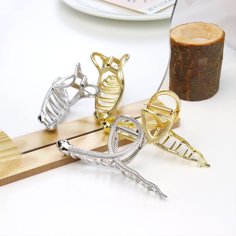 GRHOSE-Paquete de 2 pinzas de metal para el pelo de serpiente grandes, antideslizantes, grandes y doradas, pinzas para el pelo para mujeres y cabello más delgado y grueso, suministros de moda para el