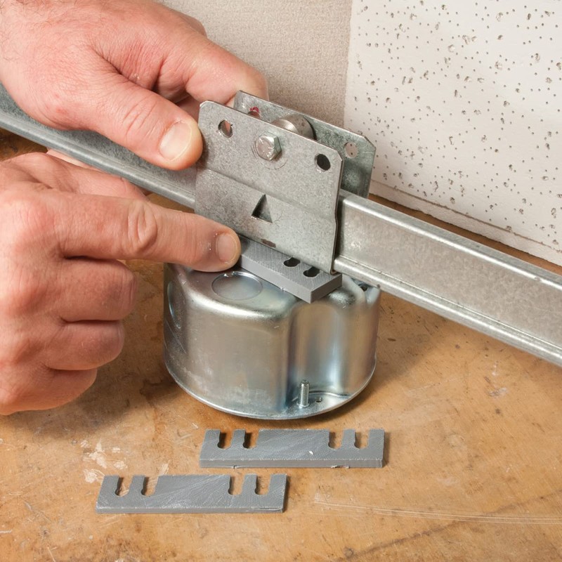 - Spacers provided for decorative ceiling tiles that are below the depth of metal grid for flush mounting of box