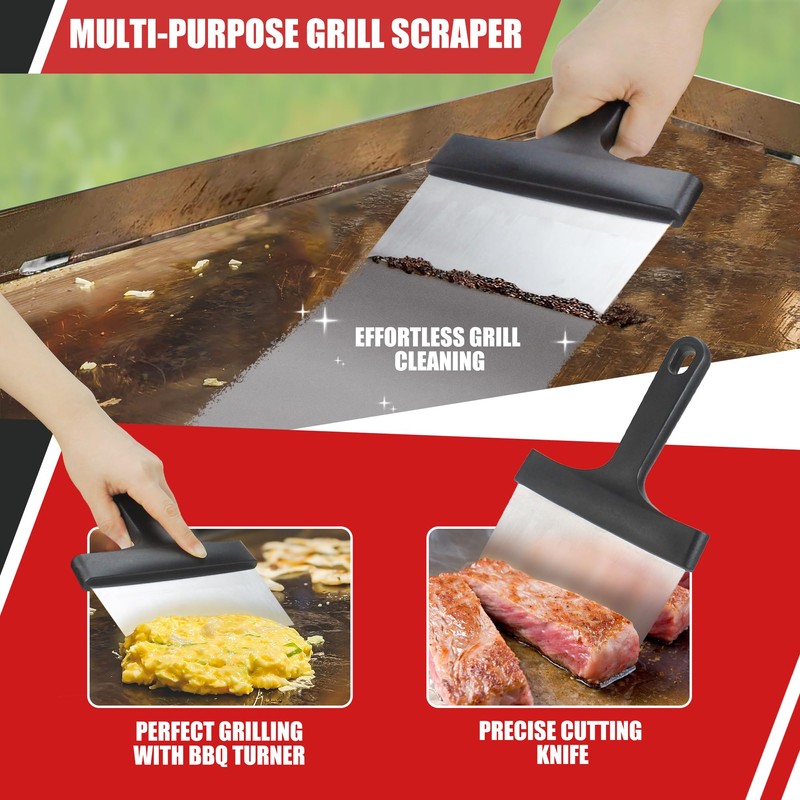 - Durable and Dependable: Crafted from high-quality, long-lasting materials, each tool in this kit is designed to endure the toughest cleaning tasks. From a sturdy griddle scraper to ergonomic handles, our kit ensures that your griddle stays in pristine condition, ready to impress at every cookout. This kit is a perfect addition to your blackstone griddle accessories.