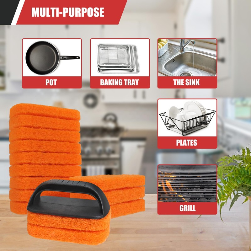 - Safe and Easy to Use: Cleaning your griddle is now a simple and safe task. The scouring pads with ergonomic handles keep your hands protected from burns, allowing you to clean both hot and cold surfaces with ease. The combination of scouring pads, grill bricks, and the grill brush ensures every inch of your griddle is spotless. The grill stone is also good on cast iron, pots, stainless steel flat top griddles, and grills. It's an essential part of your blackstone griddle cleaning kit.