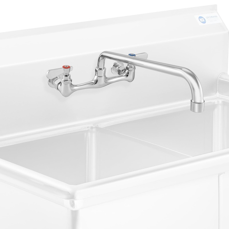 GRIDMANN Commercial Sink Faucet, 8" Center Wall Mount No Lead Faucet, 14" Swivel Spout, Dual Lever Handles, Brass Construction, Chrome Polished Finish