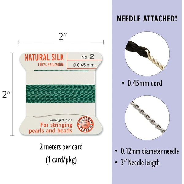 Griffin Bead Cord 100% Natural Silk Medium Green #2