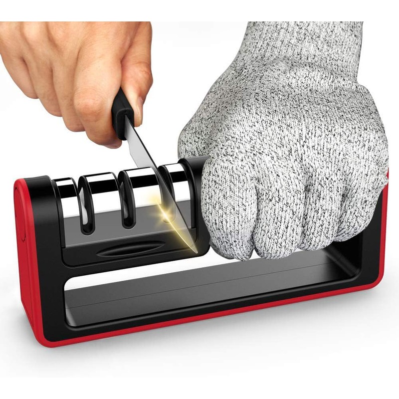 Grill-A-Sharp | Knife Sharpener 3-Stage Tungsten Steel, Diamond Grind, Ceramic Stones, Manual Kitchen Knife Sharpening System (GLOVE NOT INCLUDED)