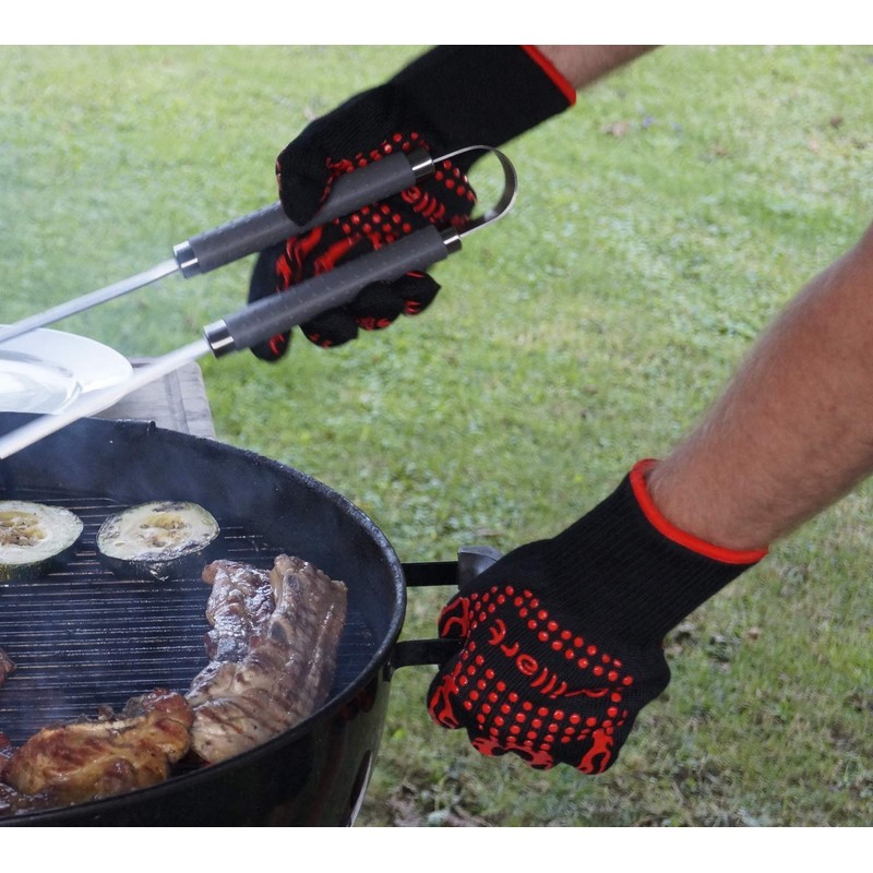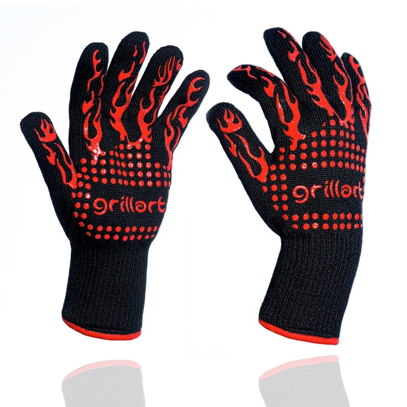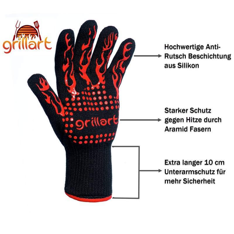- Non-slip silicone strips: the visually appealing silicone strips on the entire palm ensure an excellent grip of the gloves, which guarantees you a firm grip on all hot dishes. The premium oven gloves have been developed to the highest quality level, so we can offer a 100% money back guarantee Order the grillart gloves now to enjoy guaranteed heat protection