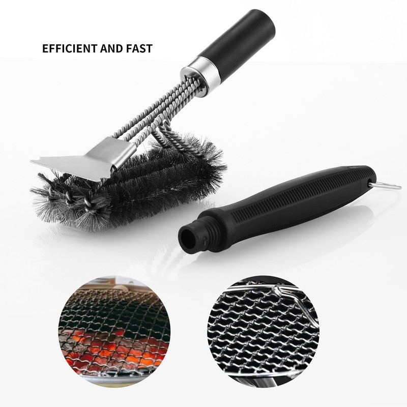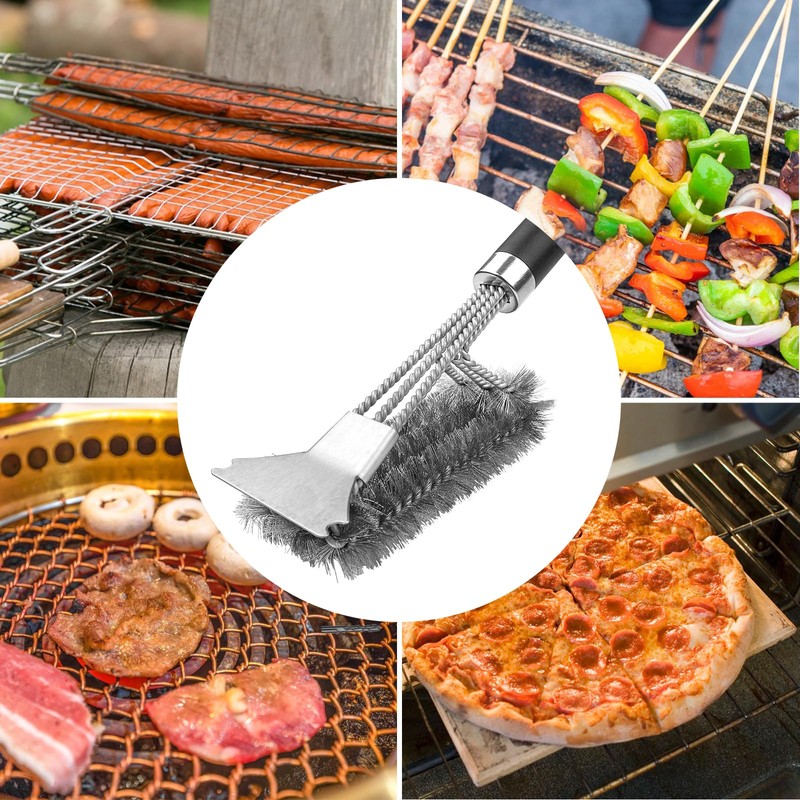 - 【MÜHELOSE REINIGUNG 】- Unsere 3-in-1 Grillbürste verfügt über einen scharfen Edelstahlschaber, Kanteschaber, dichte Borsten und einen langen rutschfesten Griff, entfernt schnell eingebrannte Rückstände von der Grillfläche und den versteckten Seitenstellen, macht Ihren Grill schnell wieder sauber. Genießen Sie köstliches Essen auf einem sauberen Grill. Eine tolle Geschenkidee für Grilllieberhaber!