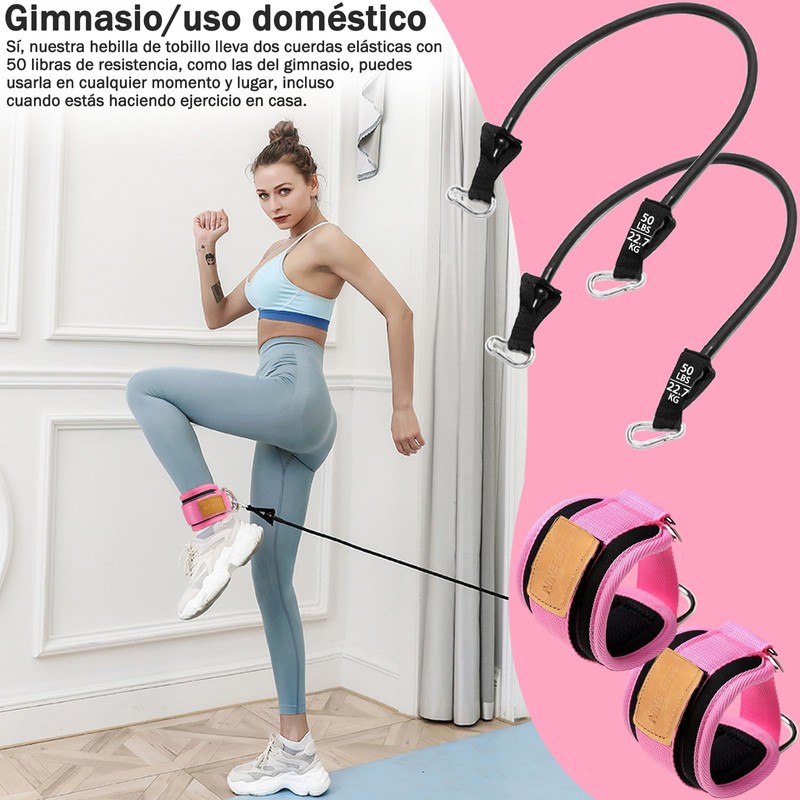 Grilletes para Tobillo Gym Mujer Con Doble D Argolla,Correas de Tobillo Gym Ajustable con 50 Libras Bandas de Resistencia y Anclajes de Puerta,Para Ejercicios de Piernas,Glúteos,Abdominales(1 Par)