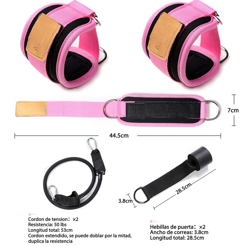 - 🦵Diseño Exquisito: Equipado con un logotipo de piel de vaca genuina, la forma simple y hermosa cumple con sus requisitos estéticos. Estos aparatos de ejercicio gym en casa están disponibles en un discreto negro y un elegante rosa. Los colores únicos, combinados con tu ropa deportiva, te convierten en un hermoso paisaje. Equipado con dos cuerdas tensoras y dos hebillas de puerta, adecuadas tanto para hombres como para mujeres.