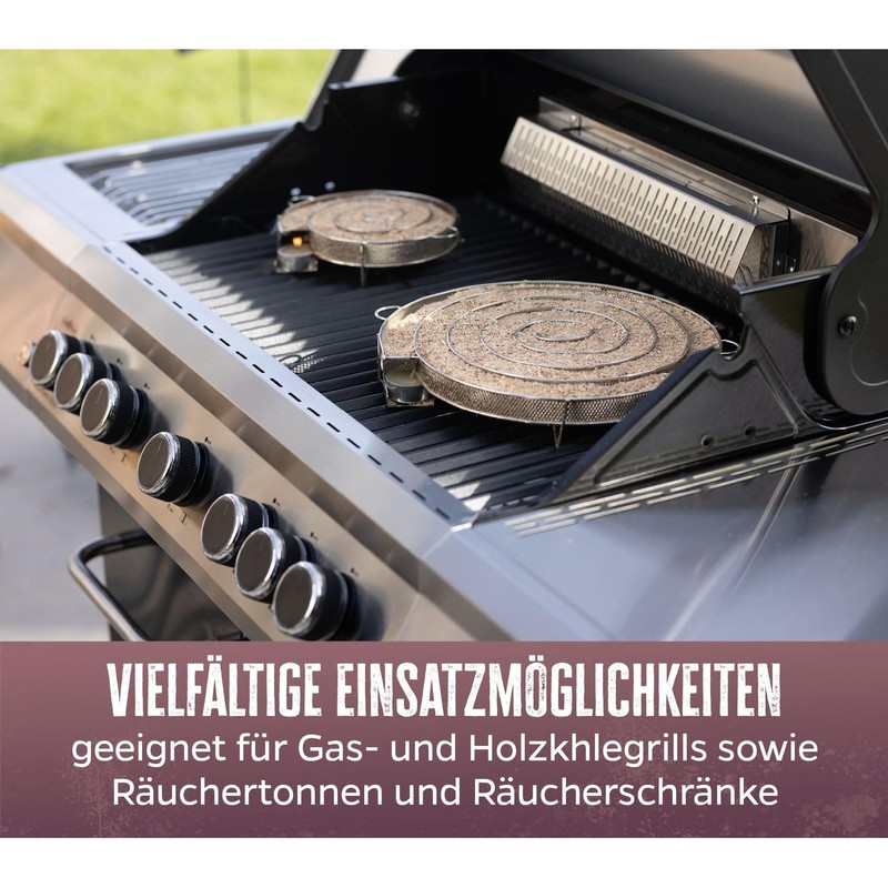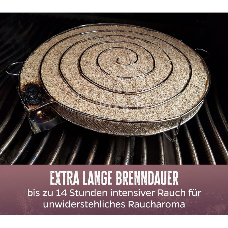 - High quality - The round smoke generator for grill and oven is made of steel. The savings burner transforms any grill into a smokehouse and is therefore a reliable companion for many barbecue seasons.