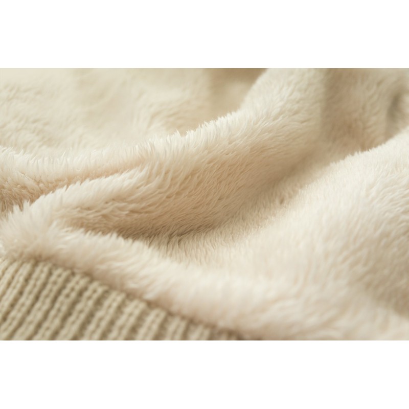 - Knitted hat with very soft, velvety inner lining (teddy fleece). On the outside, it has a chunky knit design, but on the inside it keeps you very warm due to the teddy fabric.