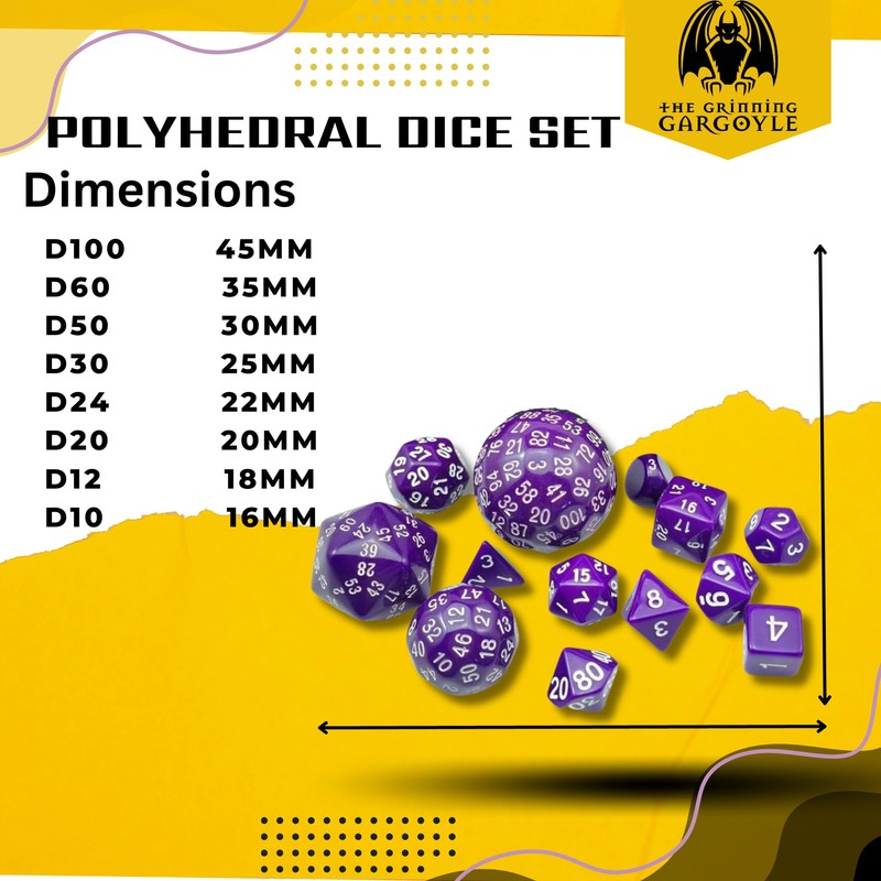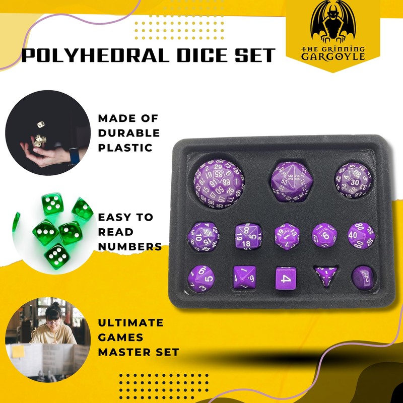 Grinning Gargoyle - 13 Piece Deluxe Games Master Polyhedral RPG Dice Set - Perfect for DnD and other Role-playing Games - Includes 100 Sided Die - Rolling Poly Roleplaying Game Accessory (Purple)
