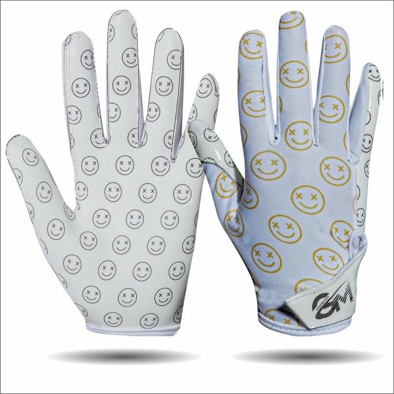 Grip Mania Emoticons V1 Mens Football Gloves, Football Gear, Youth and Adults Sticky Receiver Gloves (CE-White, Adult Large)